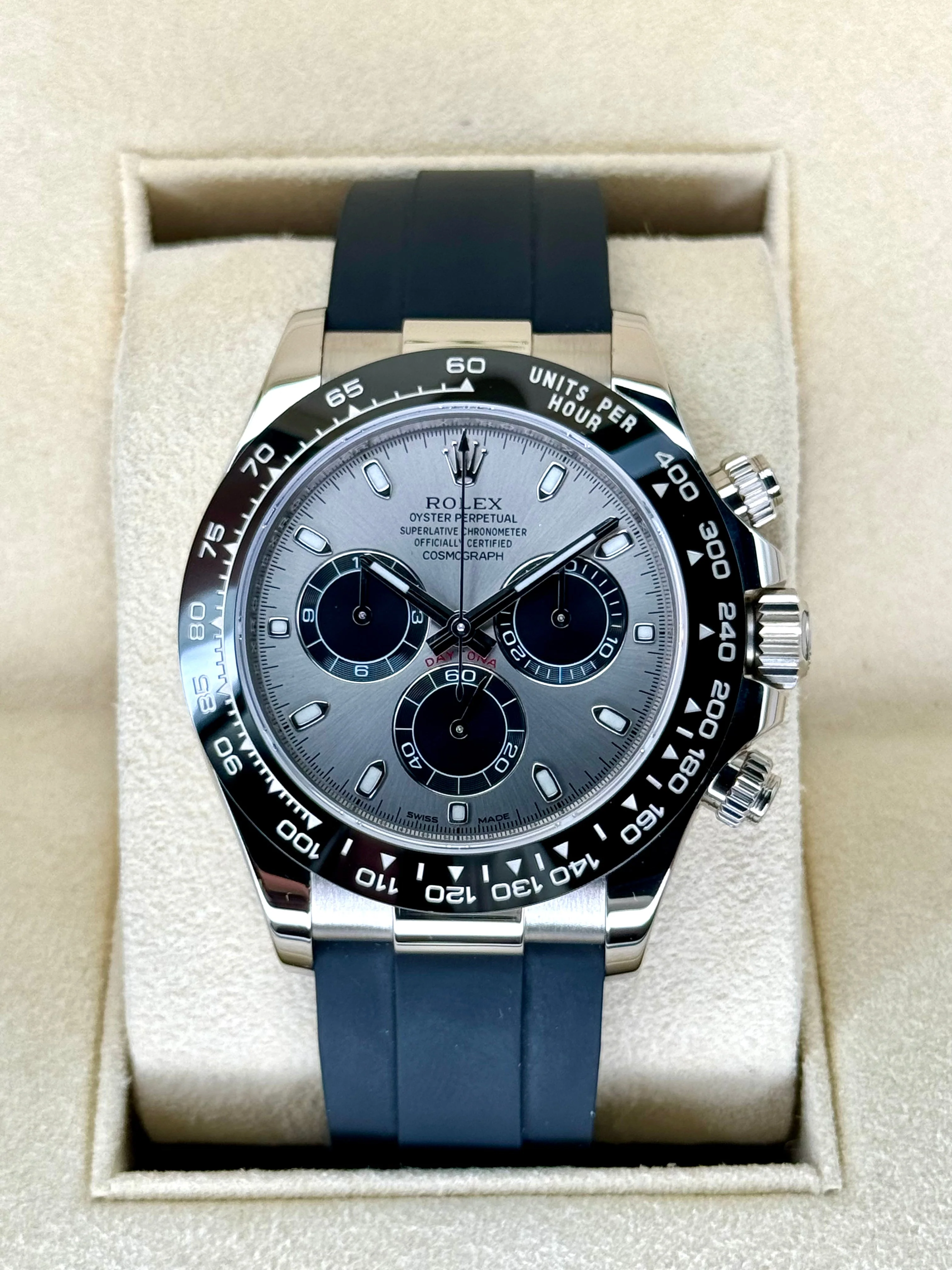 Daytona 40mm 116519LN White Gold Oysterflex Grey Ghost Dial