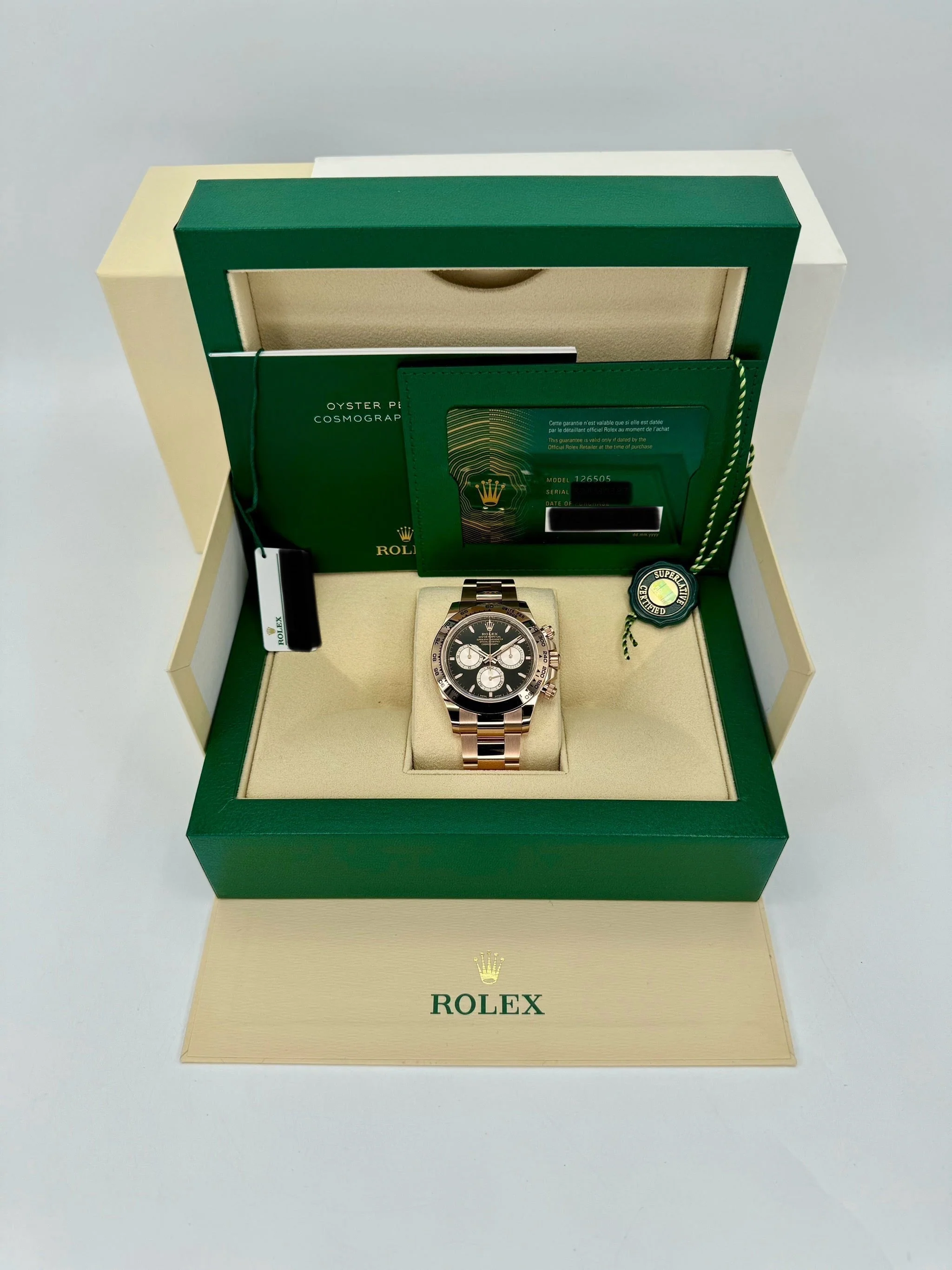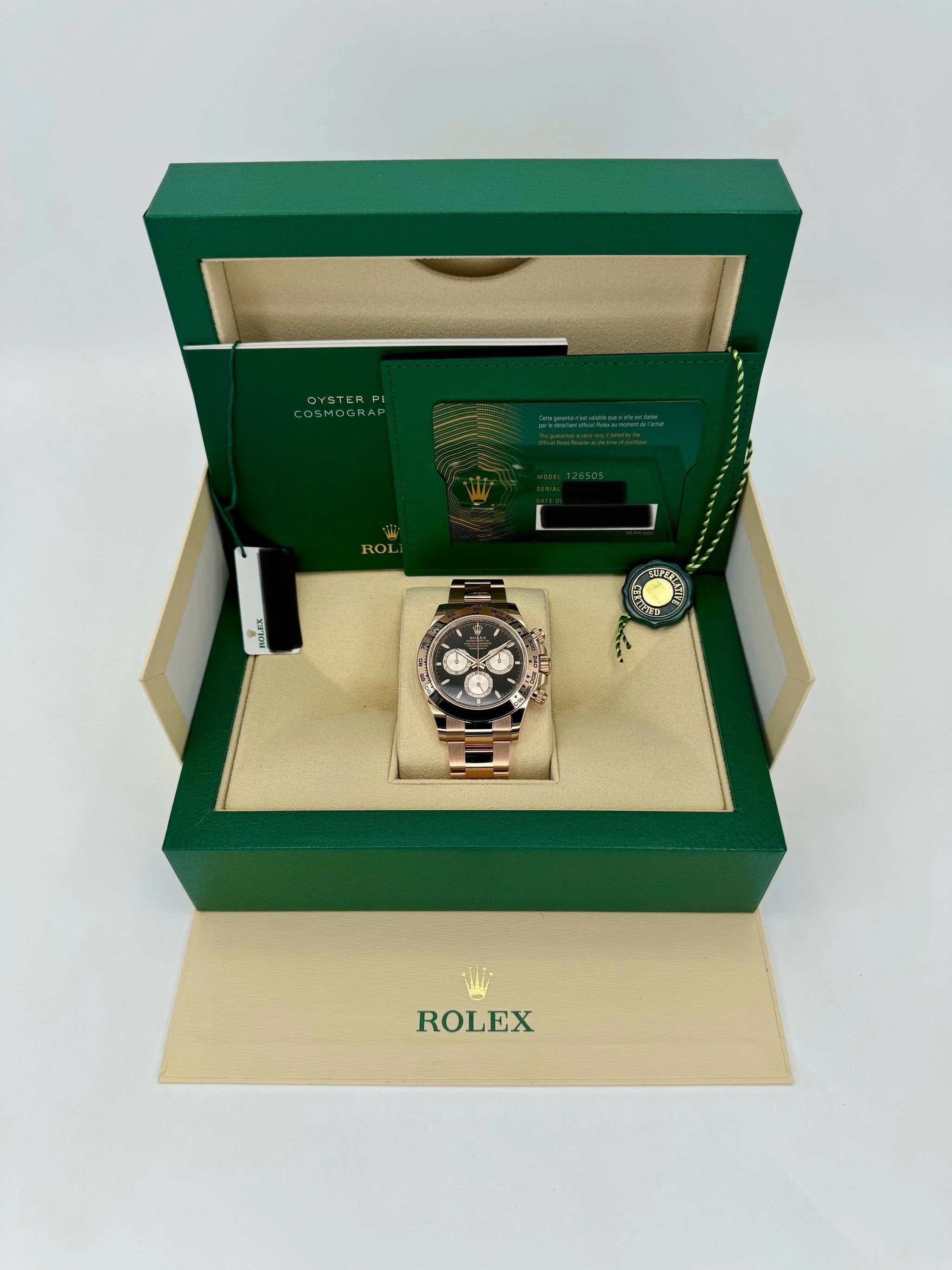 Daytona 40mm 126505 Rose Gold Black Dial