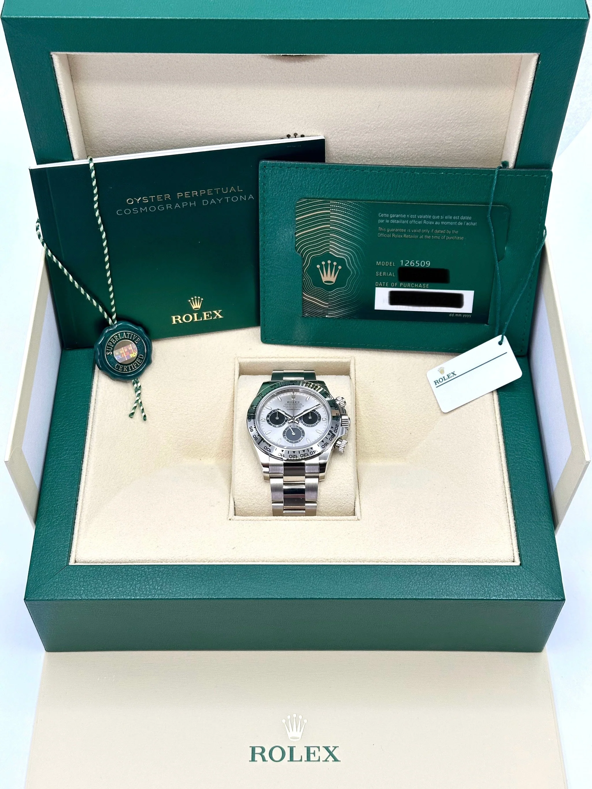 Daytona 40mm 126509 White Gold Silver Ghost Dial